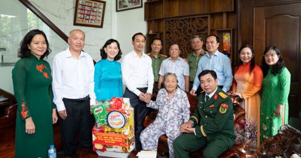Đồng chí Nguyễn Thanh Nhàn cùng đoàn công tác của tỉnh thăm, tặng quà gia đình chính sách phường Bình Đức. Ảnh: TRUNG HIẾU