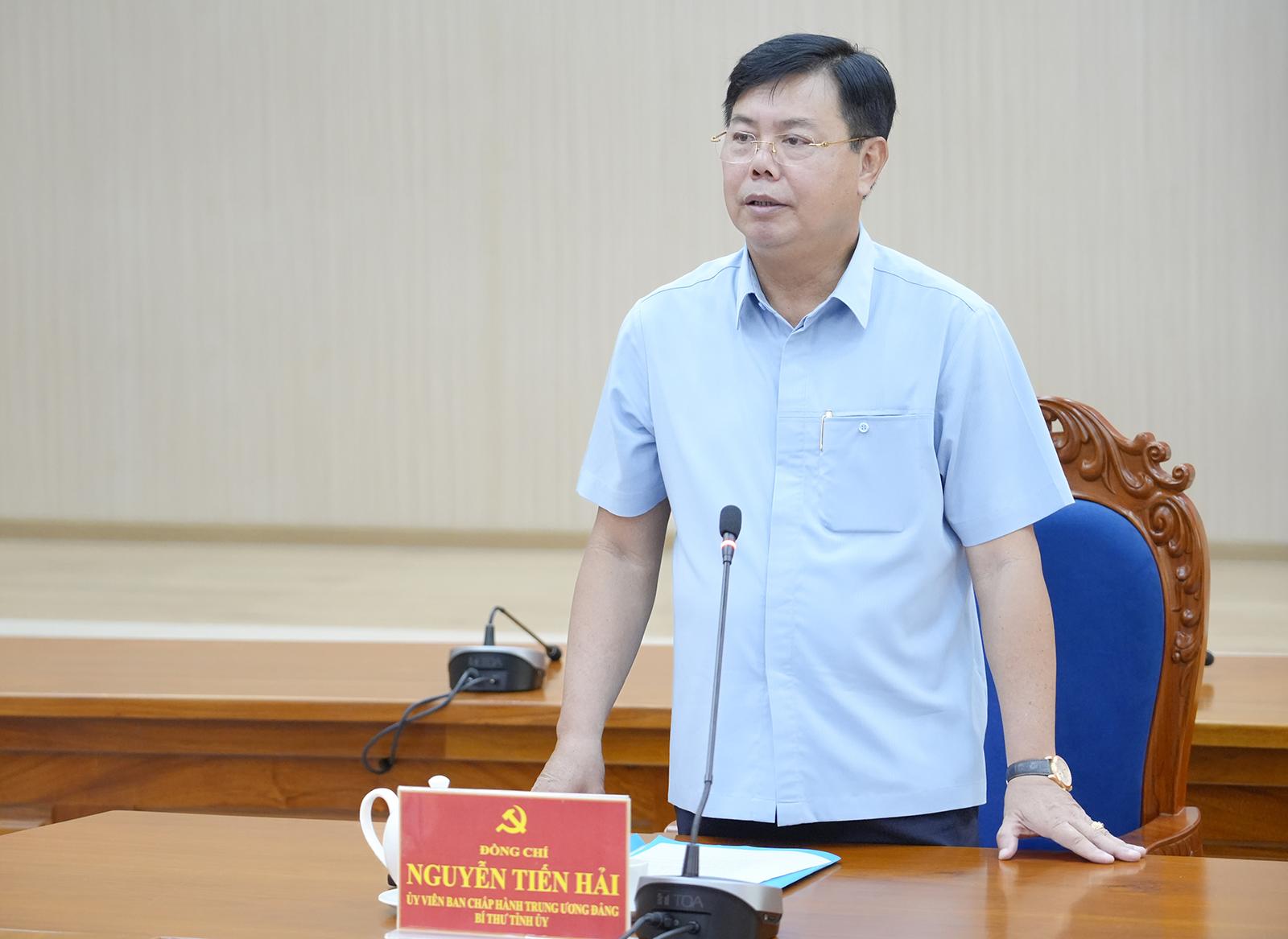 Ủy viên Ban Chấp hành Trung ương Đảng, Bí thư Tỉnh ủy An Giang Nguyễn Tiến Hải phát biểu chỉ đạo buổi làm việc.