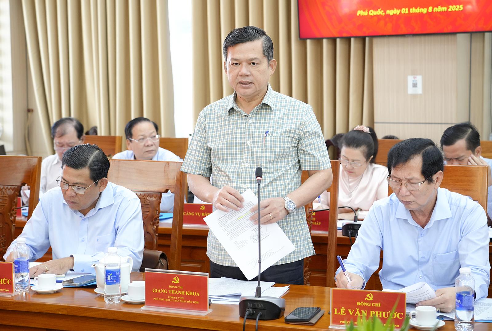 Phó Chủ tịch UBND tỉnh An Giang Giang Thanh Khoa báo cáo tại buổi làm việc.