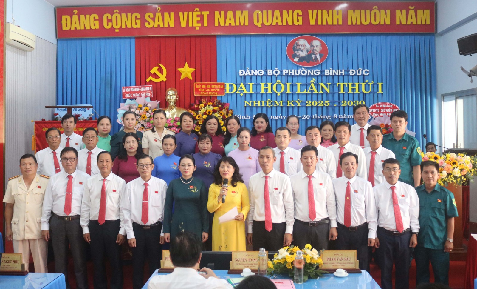 Đại hội công bố quyết định của Ban Thường vụ Tỉnh ủy An Giang chỉ định 33 đồng chí tham gia Ban Chấp hành Đảng bộ phường Bình Đức. Đồng chí Trần Thị Ngọc Diễm được chỉ định giữ chức Bí thư Đảng ủy phường nhiệm kỳ 2025 - 2030.