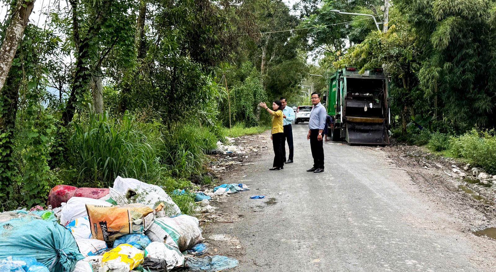 Lãnh đạo xã Ô Lâm khảo sát, tìm phương án xử lý tình trạng quá tải tại bãi rác.