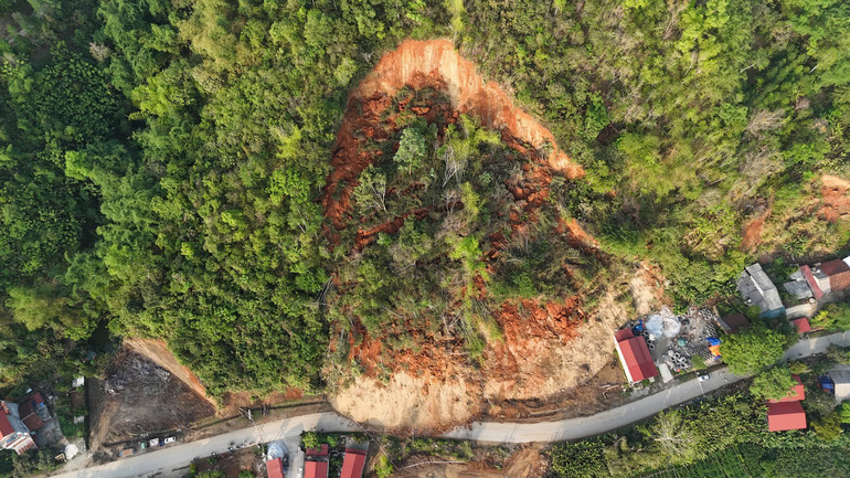 | Sạt lở tại Km31+100 tuyến ĐT258 thuộc thôn Nà Mô, xã Địa Linh. (Ảnh: Báo Bắc Kạn) |