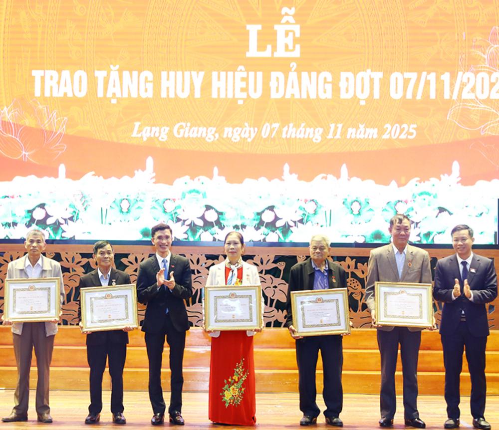 Theo Quyết định số 12 - QĐ/TU ngày 10/10/2025 của Ban Thường vụ Tỉnh ủy, đợt 7/11/2025, Đảng bộ xã Lạng Giang có tổng số 38 đảng viên được tặng Huy hiệu Đảng. Trong đó có 8 đồng chí 60 năm tuổi Đảng, 2 đồng chí 50 năm tuổi Đảng, 8 đồng chí 45 năm tuổi Đảng, 11 đồng chí 40 năm tuổi Đảng và 9 đồng chí 30 năm tuổi Đảng.