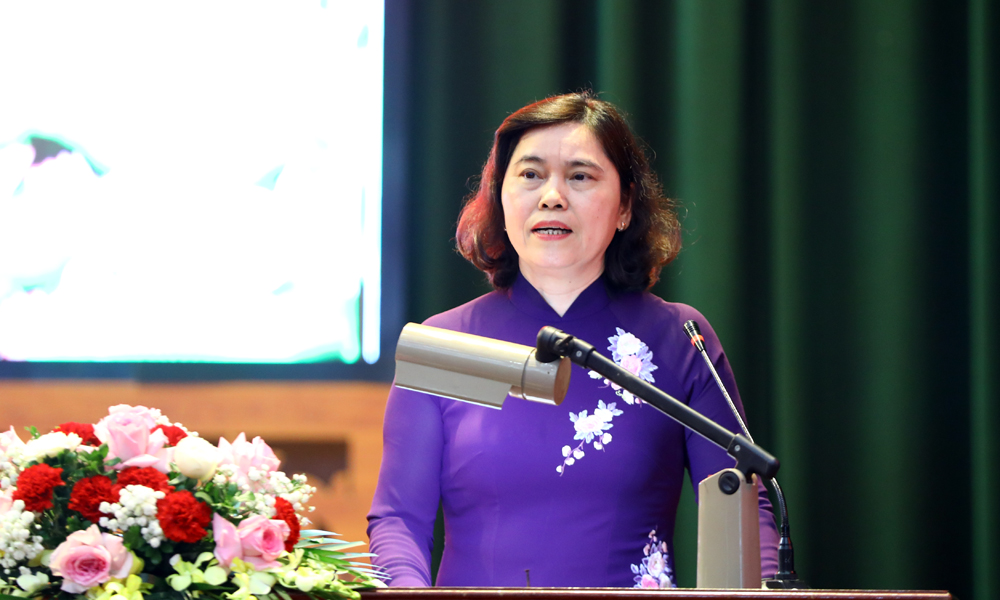 | Đồng chí Trần Thị Hằng phát biểu tại buổi lễ. |
