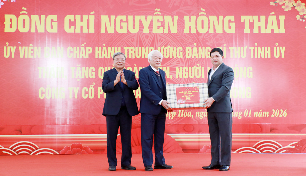 Đồng chí Bí thư Tỉnh ủy chúc Tết, tặng quà cho lãnh đạo Công ty và trao 200 suất quà cho đoàn viên, công nhân lao động có hoàn cảnh khó khăn đang làm việc tại doanh nghiệp. Mỗi suất quà gồm 1 triệu đồng tiền mặt (từ nguồn tài chính của Liên đoàn Lao động tỉnh) và phần quà hiện vật trị giá 300 nghìn đồng (do Công đoàn công ty hỗ trợ).