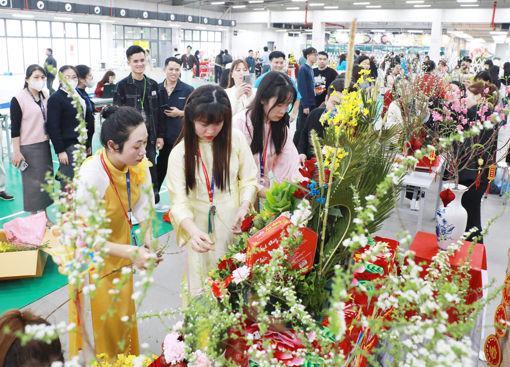Ngoài ra, Công đoàn công ty tặng vé xe cho gần 1,1 nghìn công nhân xa quê, chủ yếu là người dân tộc thiểu số, trường hợp hoàn cảnh khó khăn (mỗi vé trị giá 200 nghìn đồng) để về quê ăn Tết. Không chỉ chú trọng hỗ trợ vật chất, dịp này, đông đảo đoàn viên được tham gia các hoạt động văn hóa, trò chơi ý nghĩa như: Trang trí mâm ngũ quả ngày Tết; chơi “minigame” nhận quà liền tay... Qua đây, tạo không khí vui tươi, đầm ấm, tạo động lực để công nhân tiếp tục gắn bó với doanh nghiệp và khẳng định vai trò của tổ chức công đoàn trong doanh nghiệp FDI.