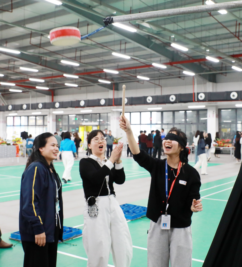 | Đoàn viên công ty tham gia trò chơi "bịt mắt đánh trống". |