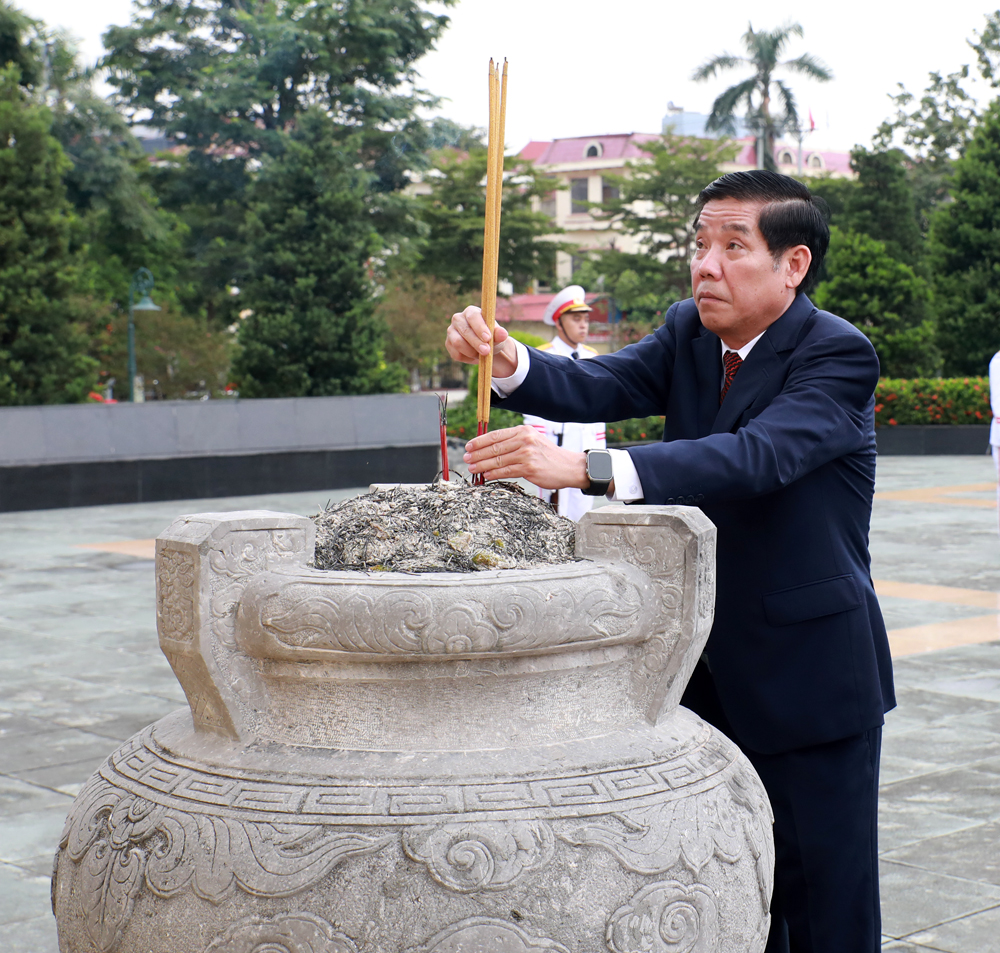 Các đồng chí lãnh đạo tỉnh và đại biểu dâng hương tại Đài tưởng niệm các Anh hùng liệt sĩ tỉnh. |