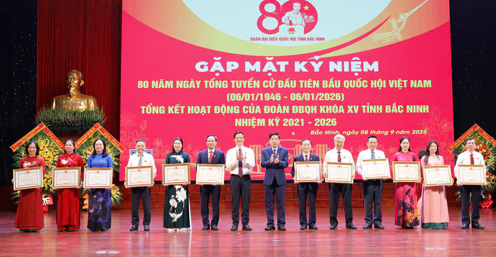 Chủ tịch UBND tỉnh tặng Bằng khen cho 12 Đại biểu Quốc hội khóa XV có đóng góp tích cực vào sự phát triển kinh tế - xã hội của tỉnh và nhiều tập thể, cá nhân có thành tích xuất sắc trong phối hợp, tham mưu, phục vụ các hoạt động của Đoàn Đại biểu Quốc hội khóa XV tỉnh Bắc Ninh.