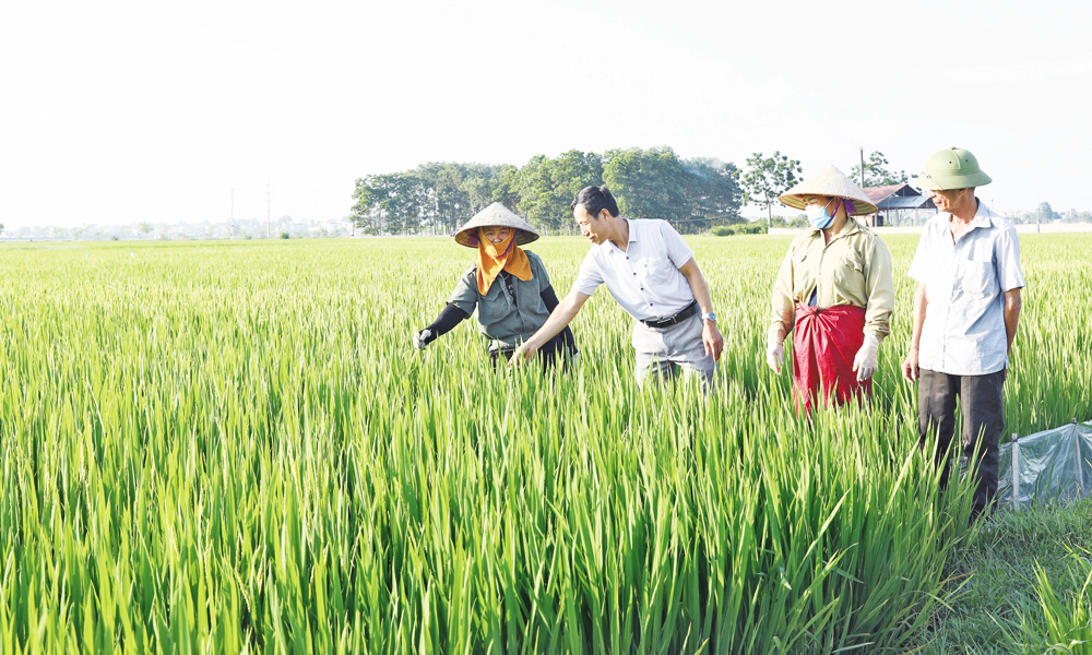 Đảng viên Chi bộ thôn Nam Đồng, xã Hiệp Hòa thường xuyên nắm bắt tình hình sản xuất của người dân. |