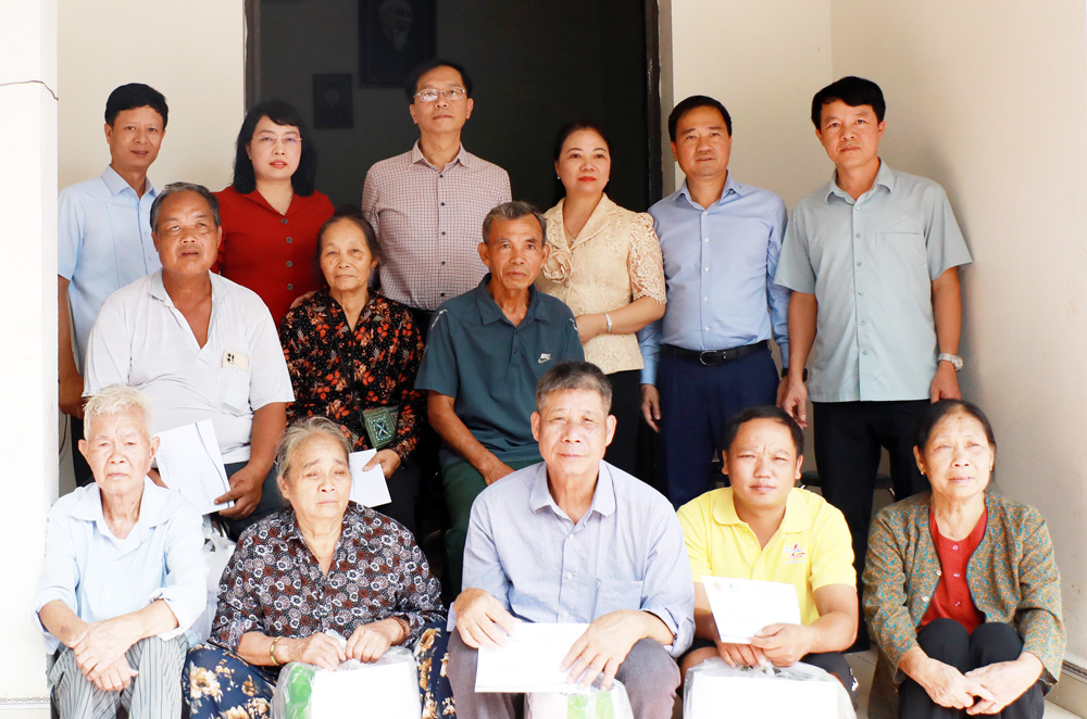 | Đại diện lãnh đạo Ủy ban MTTQ tỉnh, Văn phòng Tỉnh ủy và Tập đoàn trao quà cho các hộ dân phường Đa Mai. |