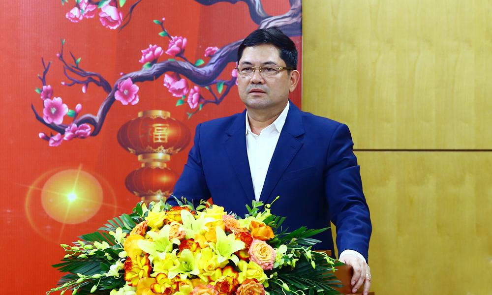 | Đồng chí Nguyễn Hồng Thái thông tin tình hình phát triển kinh tế - xã hội của tỉnh và chúc Tết các đại biểu. |