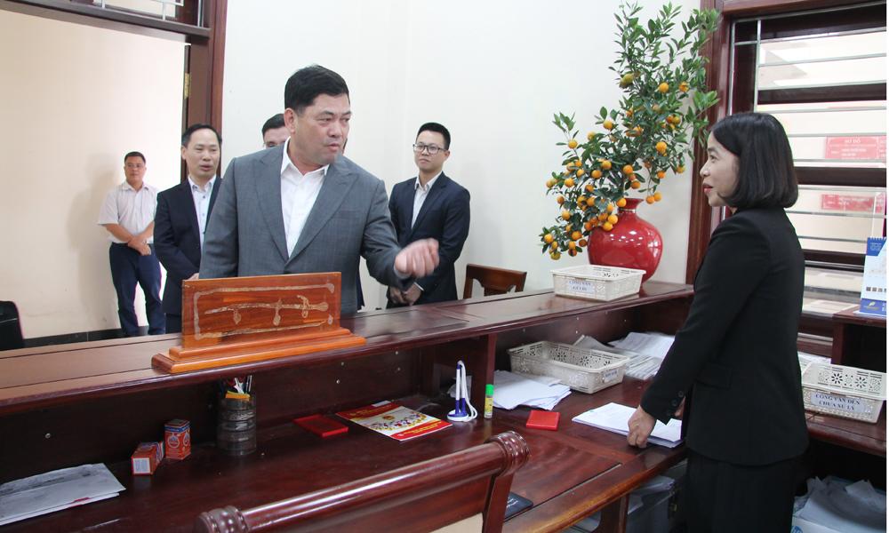 | Đồng chí Bí thư Tỉnh ủy Nguyễn Hồng Thái thăm, động viên cán bộ, công chức xã Lạng Giang làm việc. |