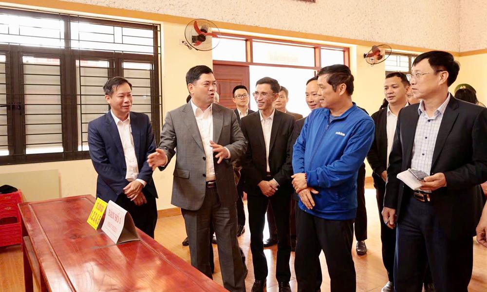 | Đồng chí Nguyễn Hồng Thái kiểm tra công tác bầu cử tại thôn Tân Sơn 1, xã Tân Dĩnh. |