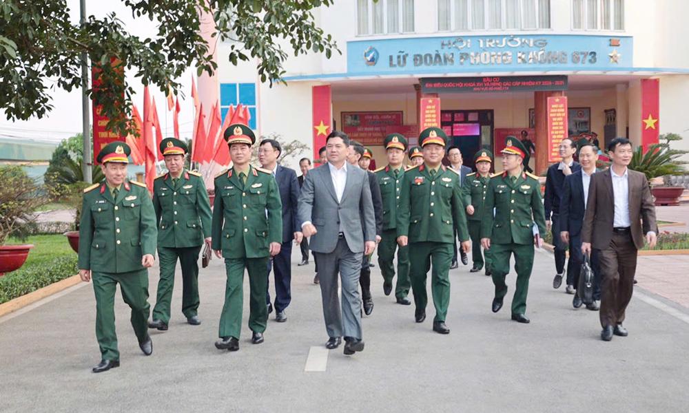 Đối với Lữ đoàn Phòng không 673, đồng chí đề nghị đơn vị phối hợp chặt chẽ với chính quyền địa phương trong công tác bầu cử, tăng cường tuyên truyền nâng cao nhận thức chính trị cho cán bộ, chiến sĩ về ý nghĩa của cuộc bầu cử, chủ động đấu tranh phản bác các thông tin sai trái, xấu độc và sẵn sàng hoàn thành tốt nhiệm vụ được giao.