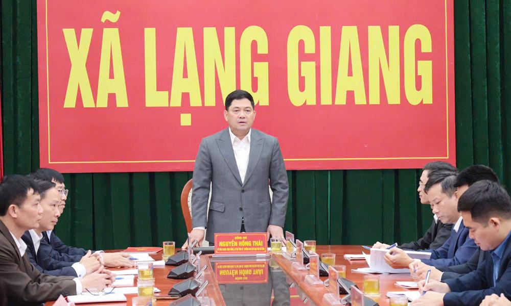 | Đồng chí Nguyễn Hồng Thái chủ trì làm việc với lãnh đạo xã Lạng Giang. |