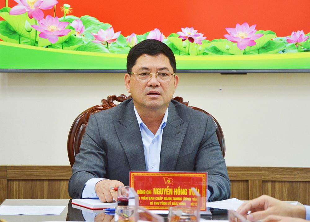 | Bí thư Tỉnh ủy Nguyễn Hồng Thái phát biểu chỉ đạo và trao đổi, làm rõ những đề xuất, kiến nghị của phường Võ Cường. |
