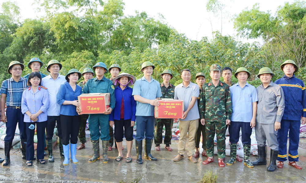 Nhân dịp này, Chủ tịch UBND tỉnh Vương Quốc Tuấn cùng đoàn công tác đã trao tặng quà của Tỉnh ủy, HĐND, UBND, Ủy ban MTTQ tỉnh (gồm 3 suất quà, mỗi suất trị giá 10 triệu đồng, cùng 100 thùng nước, 80 thùng mỳ tôm, 100 thùng sữa và 200 suất quà) động viên, hỗ trợ các lực lượng và Nhân dân tham gia gia cố, ứng cứu, bảo vệ an toàn tại tuyến đê bối Đẩu Hàn, phường Kinh Bắc.