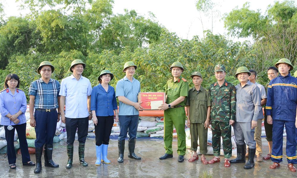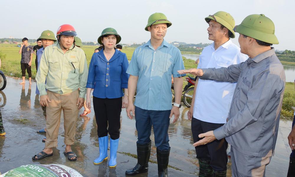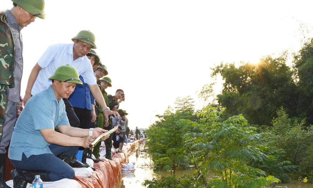 Chủ tịch UBND tỉnh Vương Quốc Tuấn thăm, động viên các lực lượng tham gia công tác chống tràn tại đê bối Đẩu Hàn