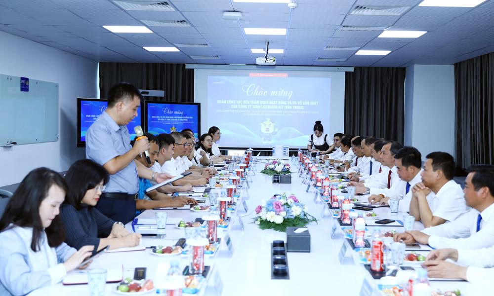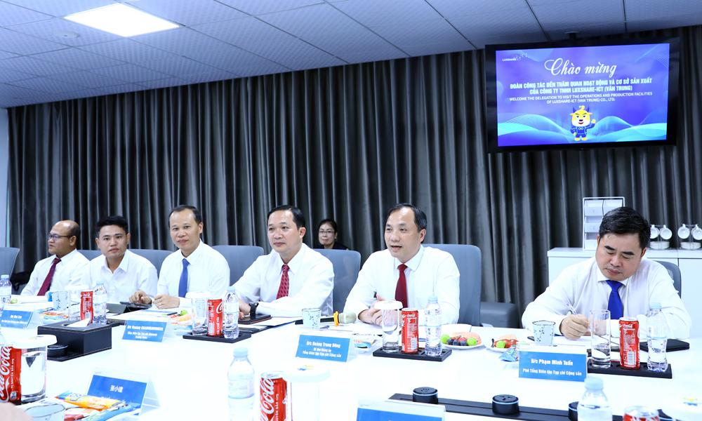 Tại buổi làm việc, đại diện lãnh đạo Công ty TNHH Luxshare - ICT đã giới thiệu tổng quan về Tập đoàn Luxshare - tập đoàn điện tử 100% vốn đầu tư nước ngoài đến từ Trung Quốc.