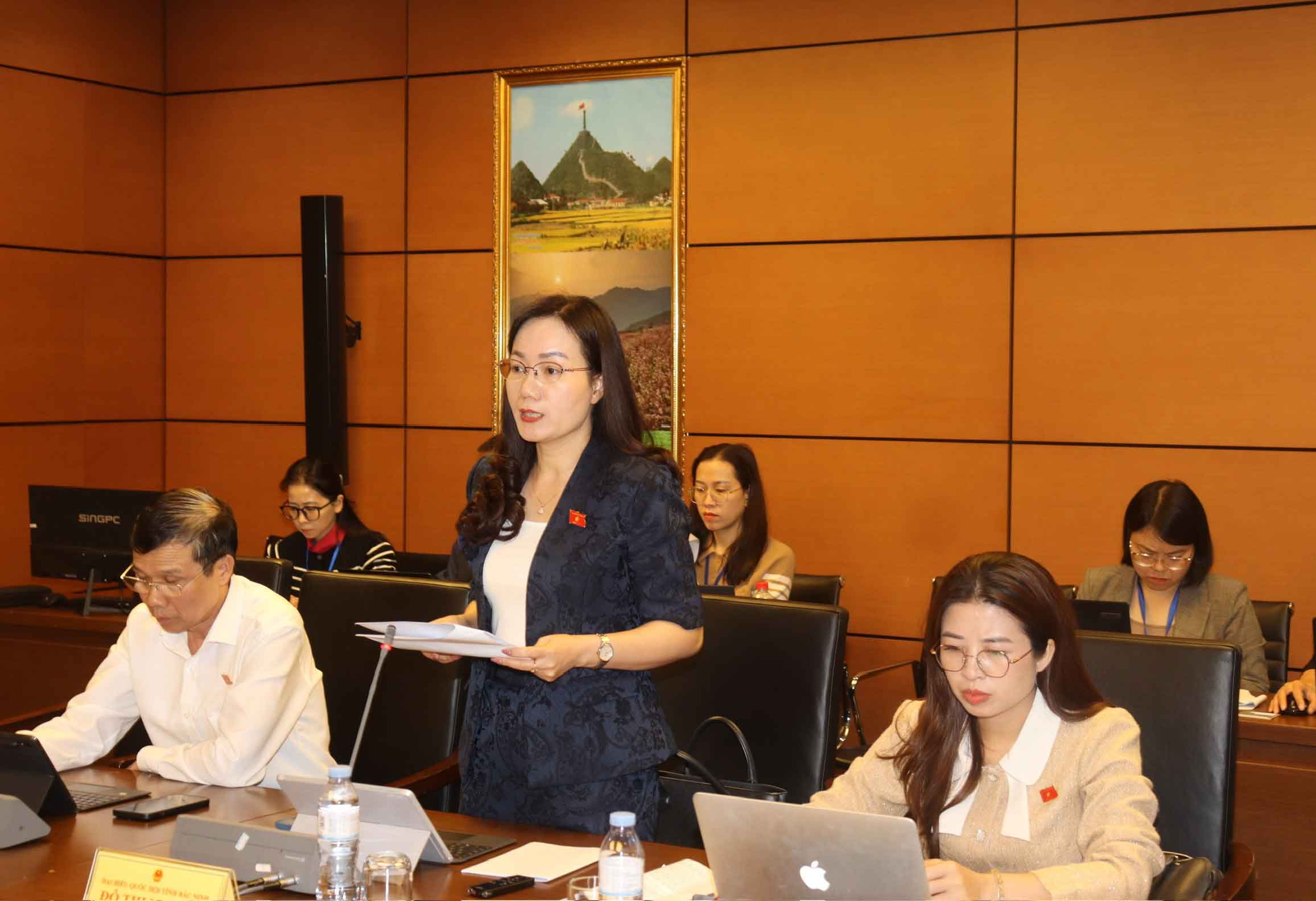 | Đại biểu Nguyễn Thị Việt Hà tham gia thảo luận tại tổ, sáng 31/10. |