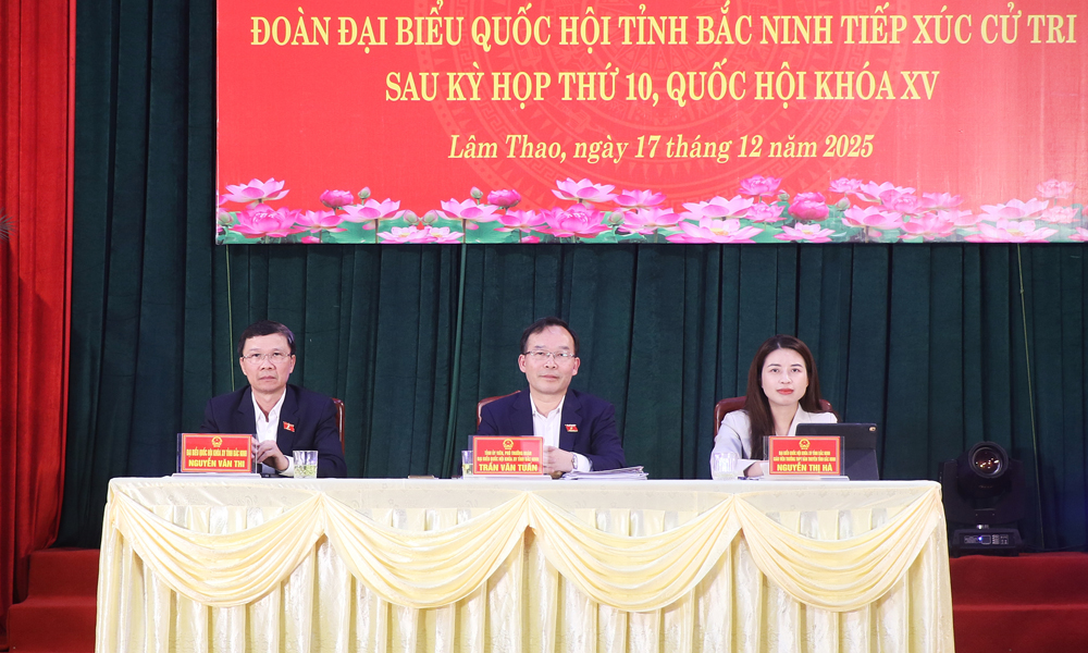 Thay mặt Đoàn đại biểu Quốc hội tỉnh, đồng chí Trần Văn Tuấn ghi nhận và đánh giá cao các ý kiến phát biểu tâm huyết, trách nhiệm của cử tri. Đồng chí khẳng định các kiến nghị của cử tri phản ánh sát thực tiễn đời sống, liên quan trực tiếp đến quyền lợi chính đáng của Nhân dân, nhất là các vấn đề liên quan đến việc bồi thường, hỗ trợ khi thu hồi đất, giải phóng mặt bằng trên địa bàn xã Lâm Thao để triển khai dự án Đầu tư xây dựng tuyến đường kết nối sân bay Gia Bình với thủ đô Hà Nội; các quy định liên quan đến hỗ trợ làng nghề truyền thống; hỗ trợ nguồn lực cho các xã, khu dân cư đáp ứng yêu cầu chuyển đổi số…