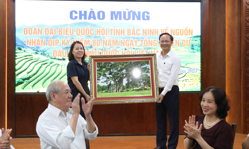 | Lãnh đạo tỉnh Tuyên Quang trao quà tặng Đoàn Đại biểu Quốc hội tỉnh Bắc Ninh. |