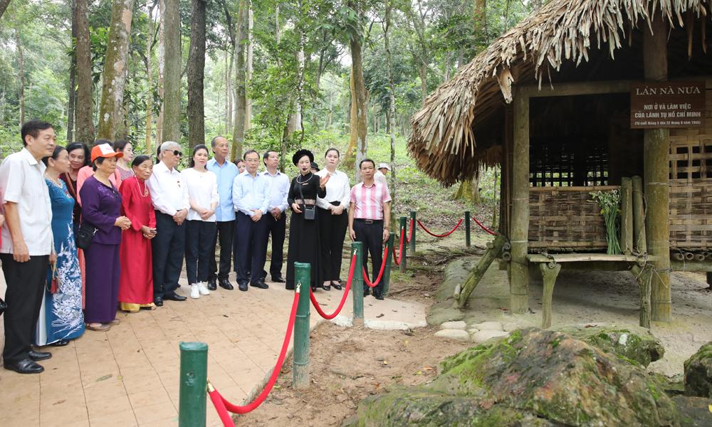 | Các đại biểu thăm Lán Nà Nưa, nơi Bác Hồ đã ở và làm việc từ cuối tháng 5 đến tháng 8/1945. |