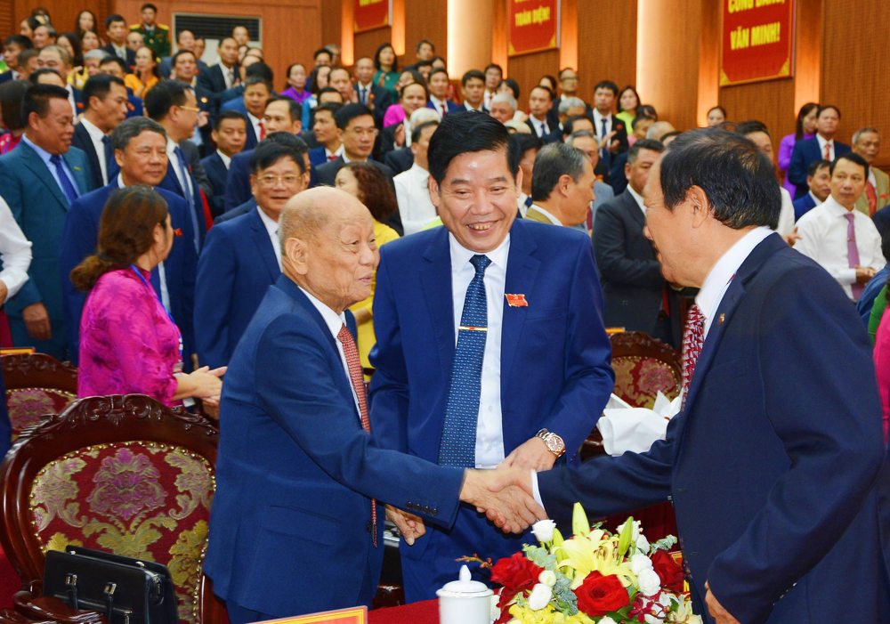 | Nguyên Bí thư Tỉnh ủy Ngô Đình Loan và các đồng chí lãnh đạo, nguyên lãnh đạo tỉnh dự Đại hội đại biểu Đảng bộ phường Kinh Bắc lần thứ I, nhiệm kỳ 2025-2030. Ảnh: Xuân Me. |