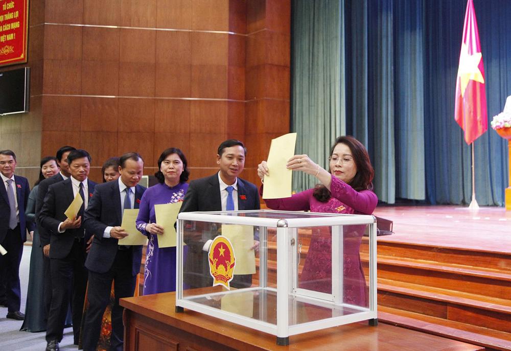 | Các đại biểu HĐND tỉnh bỏ phiếu bầu chức danh Chủ tịch UBND tỉnh nhiệm kỳ 2021 - 2026. |