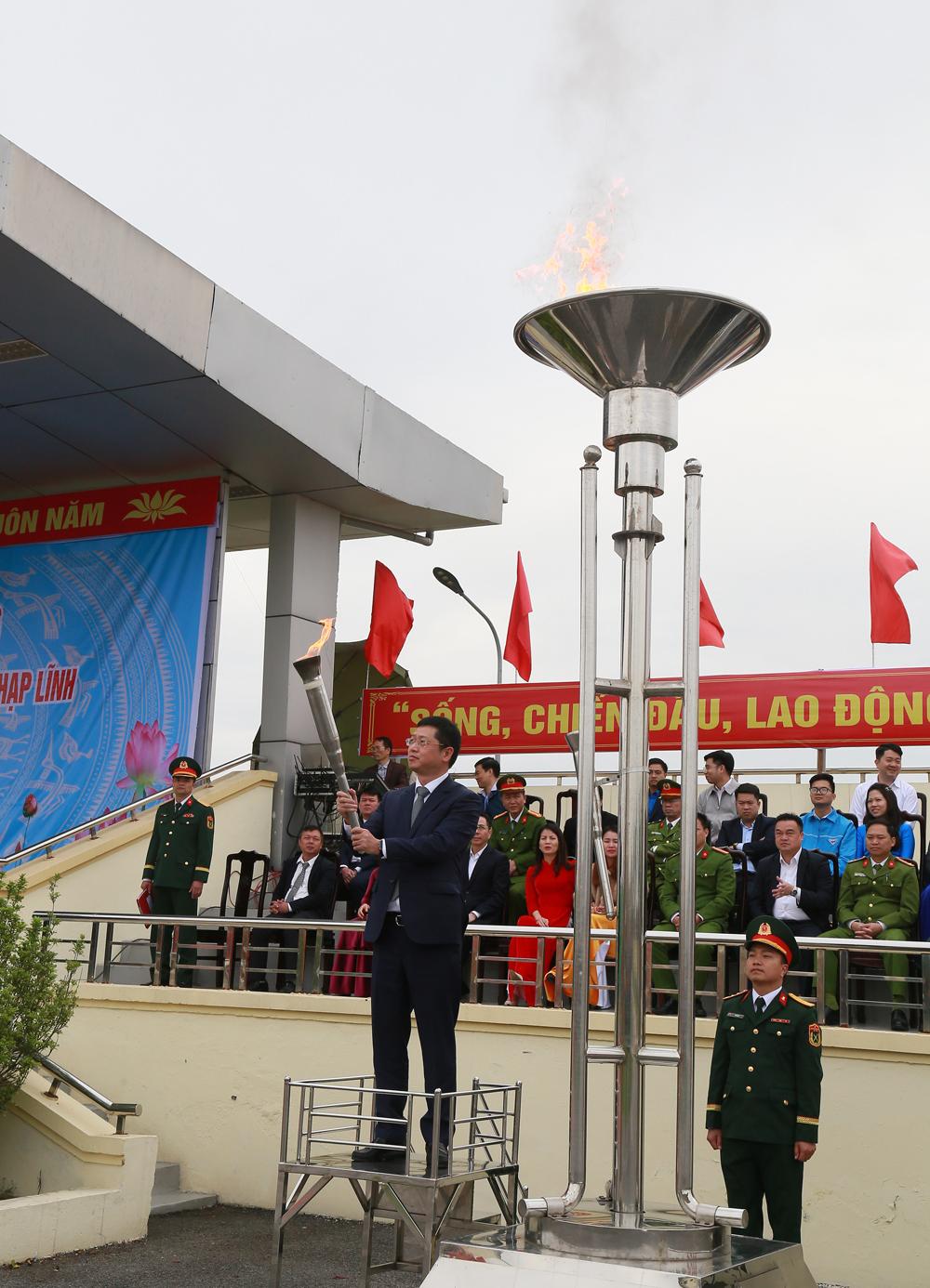 | Phó Bí thư Tỉnh ủy Trần Huy Phương thắp lửa truyền thống. |