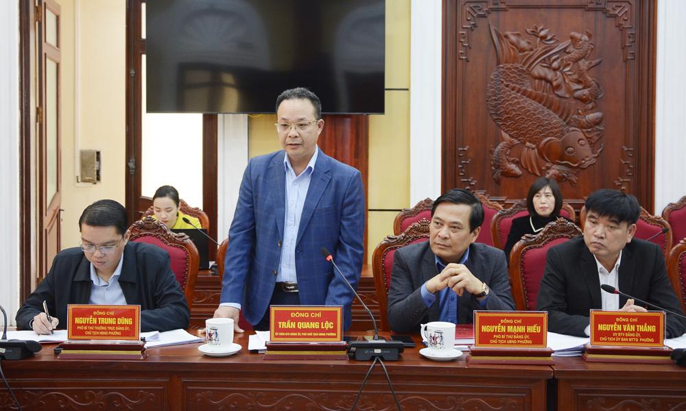 | Lãnh đạo phường Kinh Bắc báo cáo công tác triển khai bầu cử tại địa phương. |