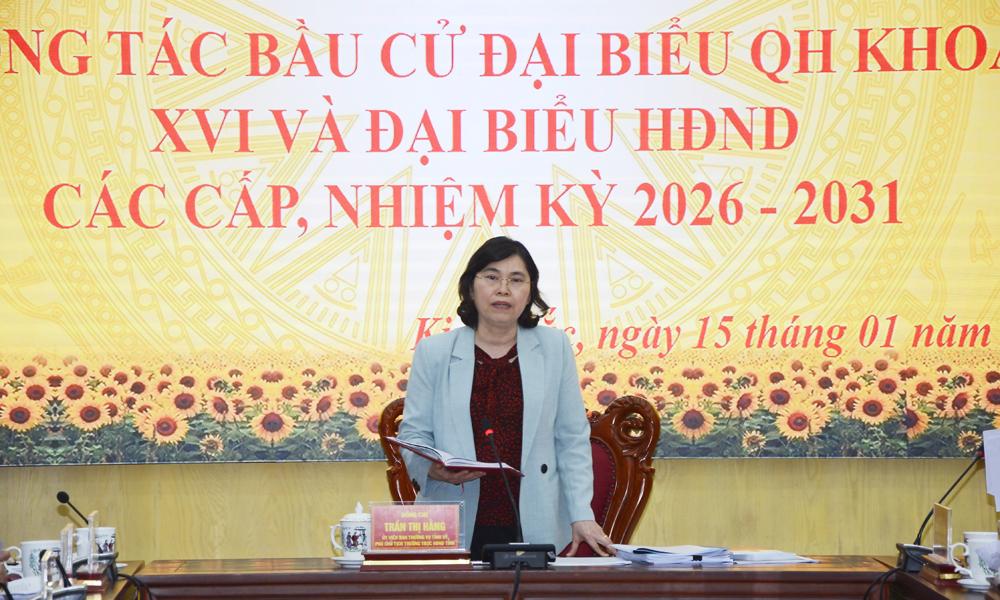 Phát biểu chỉ đạo, đồng chí Trần Thị Hằng yêu cầu trong thời gian tới, 3 phường Kinh Bắc, Vũ Ninh và Võ Cường tiếp tục quán triệt và tổ chức thực hiện nghiêm các quy định của Luật Bầu cử đại biểu Quốc hội và đại biểu HĐND; các nghị quyết, hướng dẫn của Hội đồng bầu cử Quốc gia, Ủy ban Thường vụ Quốc hội, Ủy ban Trung ương MTTQ Việt Nam và các văn bản chỉ đạo của Ủy ban bầu cử tỉnh. Chủ động rà soát toàn bộ quy trình, nhiệm vụ được giao theo từng mốc thời gian cụ thể, phân công rõ người, rõ việc, rõ tiến độ, rõ trách nhiệm, bảo đảm mọi khâu của công tác bầu cử được triển khai đúng luật, đúng trình tự, không để xảy ra sai sót.