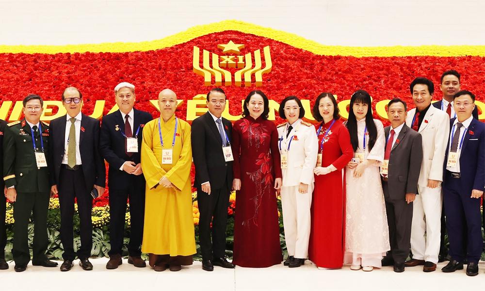 | Phó Chủ tịch nước Võ Thị Ánh Xuân, Phó Chủ tịch thứ nhất Hội đồng Thi đua - Khen thưởng Trung ương với các đại biểu dự Đại hội. |