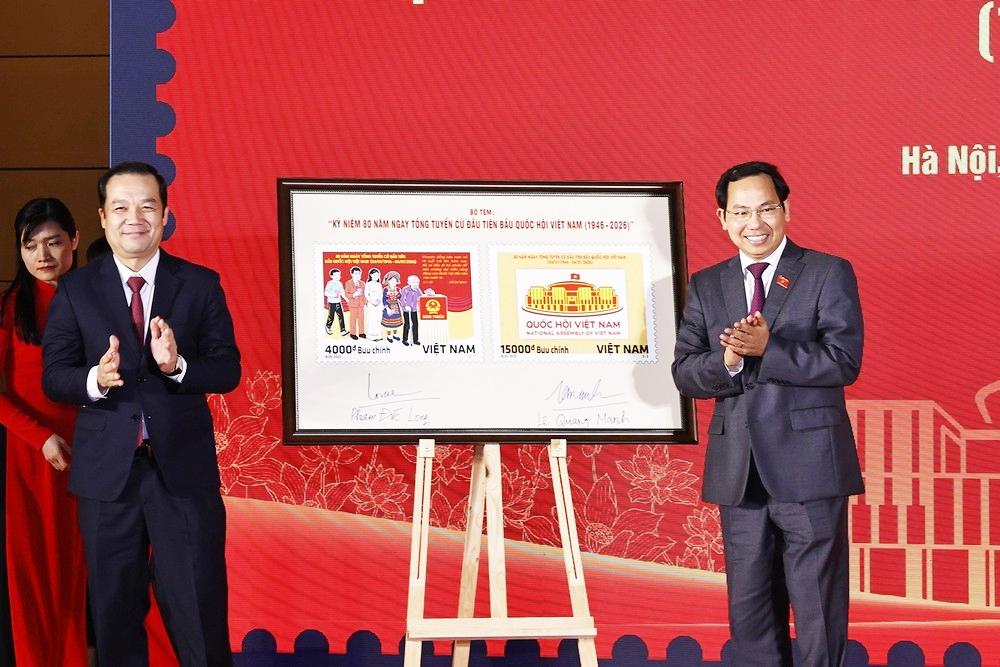 | Lễ phát hành bộ tem bưu chính kỷ niệm 80 năm Quốc hội Việt Nam. |