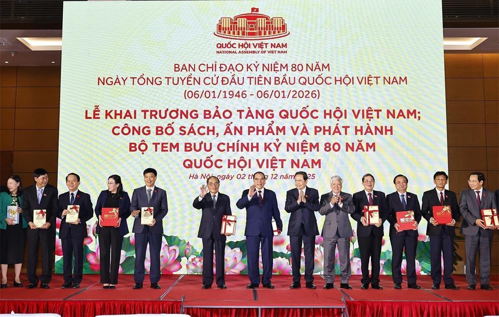 Chiều 2/12, tại Nhà Quốc hội, Văn phòng Quốc hội phối hợp với các cơ quan tổ chức Lễ khai trương Bảo tàng Quốc hội Việt Nam; công bố sách, ấn phẩm và phát hành Bộ tem bưu chính kỷ niệm 80 năm Quốc hội Việt Nam.