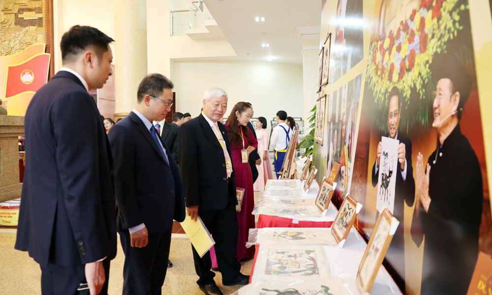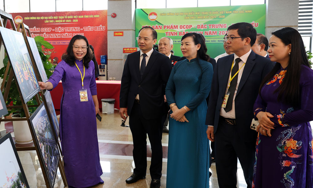 | Các đại biểu tham quan trưng bày ảnh giới thiệu thành tựu phát triển kinh tế- xã hội, hoạt động của MTTQ các cấp tại Đại hội. |