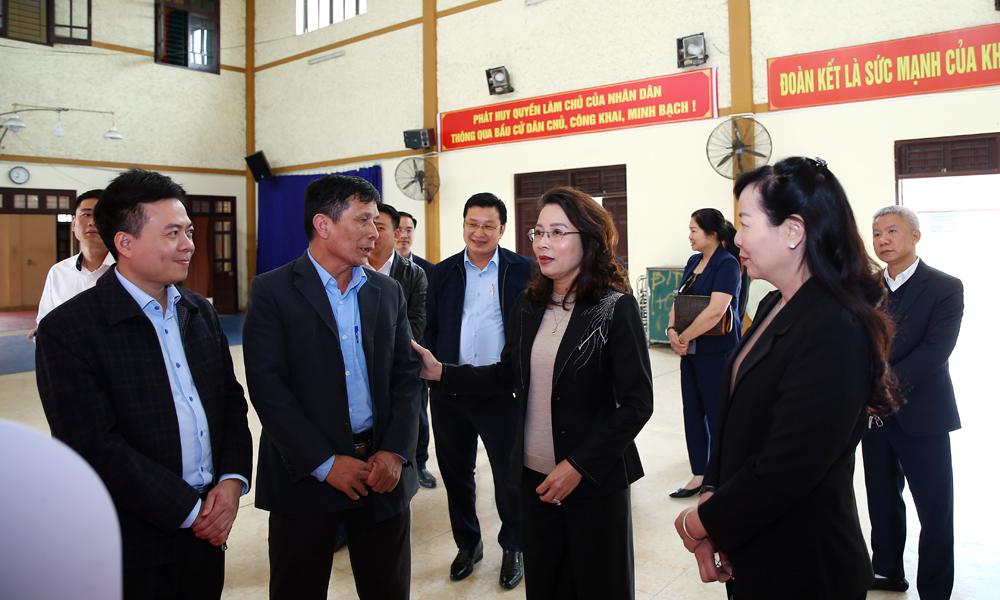 | Đồng chí Nguyễn Thị Hương, Phó Bí thư Thường trực Tỉnh ủy, Phó trưởng Ban Chỉ đạo bầu cử tỉnh kiểm tra, động viên cán bộ làm công tác bầu cử tại tổ dân phố Phù Khê Thượng, phường Phù Khê. |