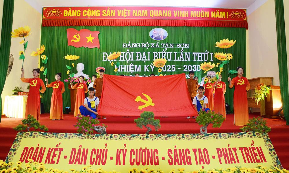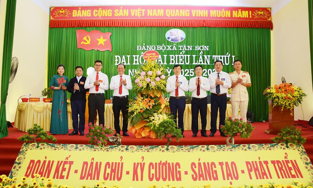Đại hội nghe công bố các Quyết định của Ban Thường vụ Tỉnh ủy về việc chỉ định Ban Chấp hành Đảng bộ xã Tân Sơn gồm 27 đồng chí; Ban Thường vụ Đảng ủy xã gồm 9 đồng chí. Đồng chí Lê Xuân Thắng được chỉ định giữ chức Bí thư Đảng ủy xã.