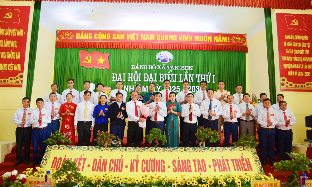 Với chủ đề “Phát huy truyền thống đoàn kết; tăng cường xây dựng, chỉnh đốn Đảng và hệ thống chính trị trong sạch vững mạnh; tập trung cao phát triển kinh tế-xã hội, bảo đảm quốc phòng, an ninh, đầu tư xây dựng kết cấu hạ tầng giao thông, đưa xã Tân Sơn phát triển nhanh, bền vững”, nhiệm kỳ 2025-2030, Đảng bộ xã Tân Sơn đưa ra 5 nhiệm vụ trọng tâm và 3 khâu đột phá cùng các nhiệm vụ, giải pháp chủ yếu nhằm thực hiện thắng lợi Nghị quyết Đại hội đề ra.