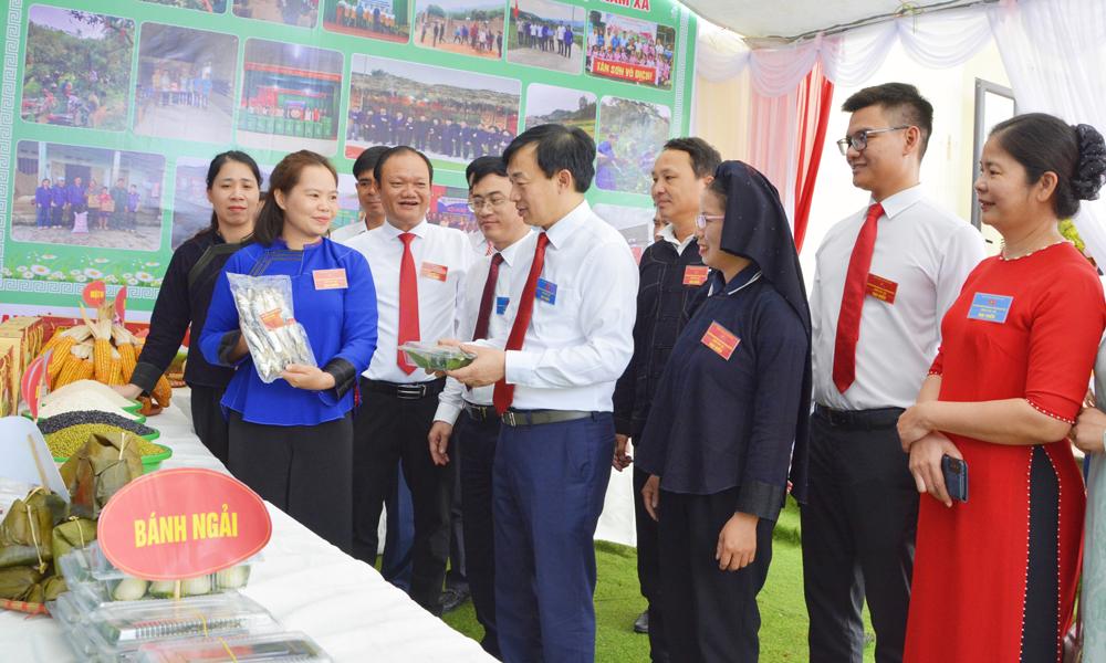Các đại biểu tham quan gian trưng bày nông sản của xã tại Đại hội. |