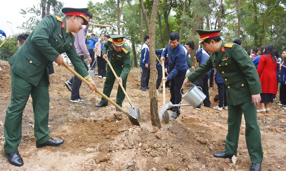 | Các lực lượng tham gia trồng cây. |