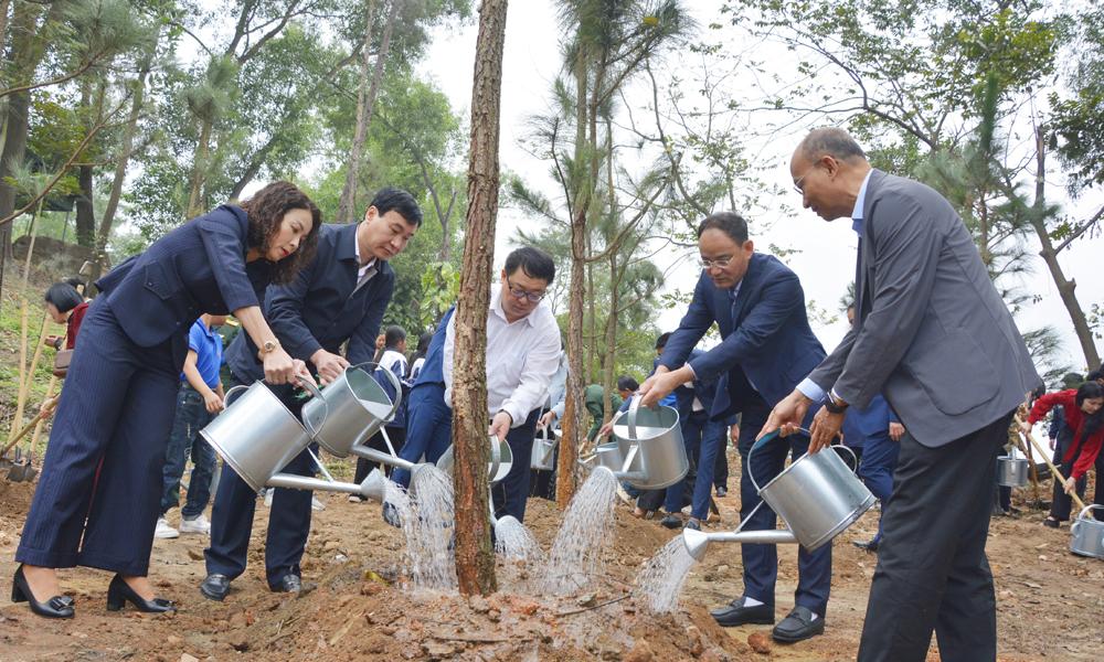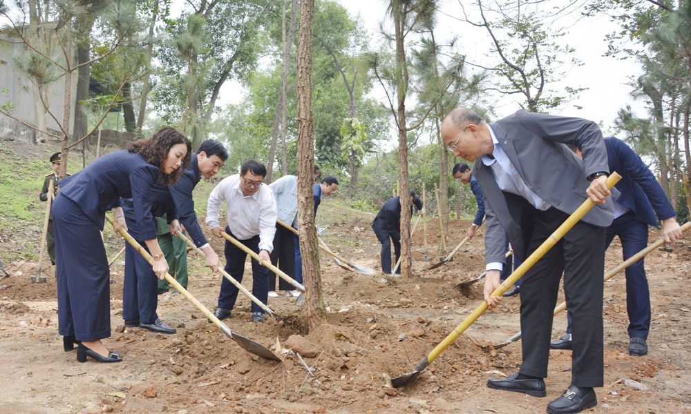Ngay sau lễ phát động, đồng chí Phó Bí thư Thường trực Tỉnh ủy Nguyễn Thị Hương cùng các đồng chí lãnh đạo và các đại biểu tham gia trồng gần 100 cây thông tại Đền thờ Bác Hồ (phía Bắc Đền Bà Chúa Kho).