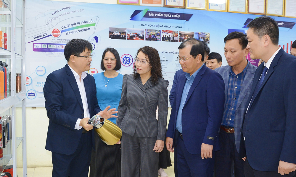 Cùng ngày, đồng chí Nguyễn Thị Hương cùng đoàn công tác của tỉnh đến thăm, kiểm tra thực tế tại Công ty Cổ phần Bóng đèn và Phích nước Rạng Đông (Khu công nghiệp Quế Võ mở rộng).