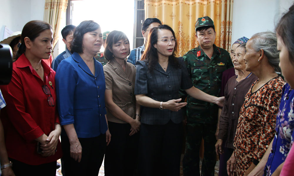 Chia sẻ với những khó khăn, vất vả của người dân địa phương, đồng chí Nguyễn Thị Hương khẳng định, tỉnh luôn theo dõi sát tình hình, chỉ đạo quyết liệt các cơ quan chức năng, cấp uỷ, chính quyền địa phương bị ảnh hưởng của thiên tai tập trung cao nhất cho công tác phòng, chống lụt bão, khắc phục hậu quả với mục tiêu cao nhất là bảo đảm an toàn sức khoẻ, tính mạng và tài sản của Nhân dân, tuyệt đối không để người dân nào thiếu đói, không có chỗ ở an toàn.