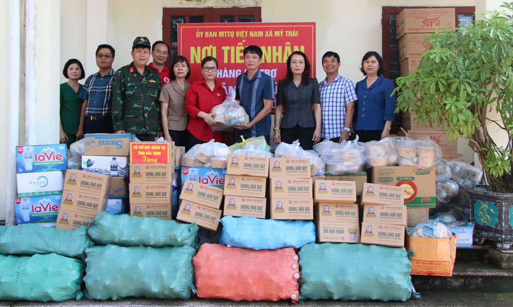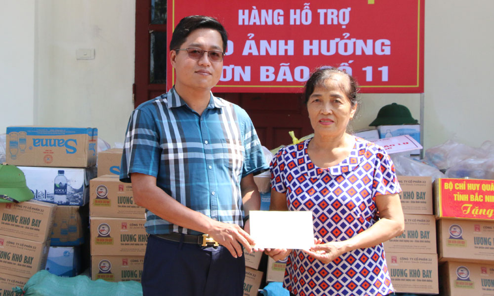 Cũng tại đây, lãnh đạo Hội Chữ Thập đỏ tỉnh tặng 1.500 suất quà gồm nhu yếu phẩm thiết yếu như: Sữa, nước lọc, xúc xích, mỳ gói, suất cơm... tổng trị giá 60 triệu đồng cho Nhân dân 2 xã. Các doanh nghiệp gồm: Tổng Công ty May Bắc Giang LGG, Công ty cổ phần Xây dựng và thương mại Duy Anh mỗi doanh nghiệp ủng hộ xã Tiên Lục 50 triệu đồng để giúp Nhân dân vùng lũ sớm vợt qua khó khăn.