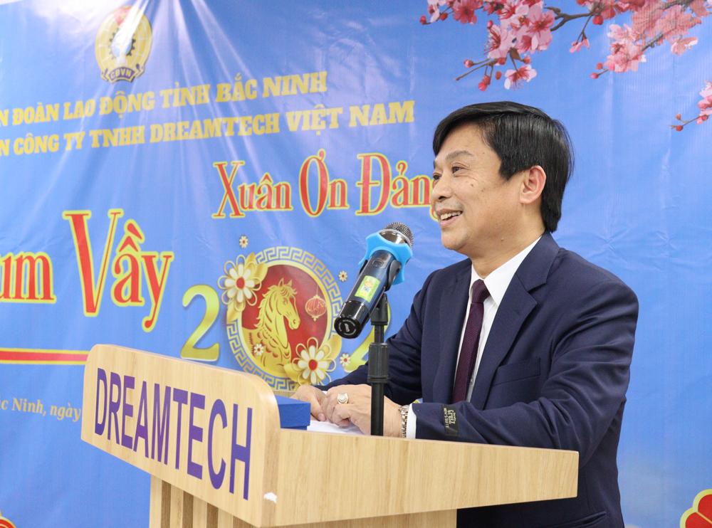 Đồng chí Nguyễn Anh Tuấn ghi nhận, biểu dương và chúc mừng những kết quả hoạt động sản xuất của Công ty Dreamtech Việt Nam trong năm qua. Đồng chí mong muốn, bước sang năm 2026, Công ty Dreamtech sẽ tiếp tục mở rộng đầu tư công nghệ, dây chuyền sản xuất hiện đại, không chỉ khẳng định vị thế trong chuỗi cung ứng toàn cầu của Samsung mà còn tiếp tục nâng cao phúc lợi cho đội ngũ lao động của Công ty.