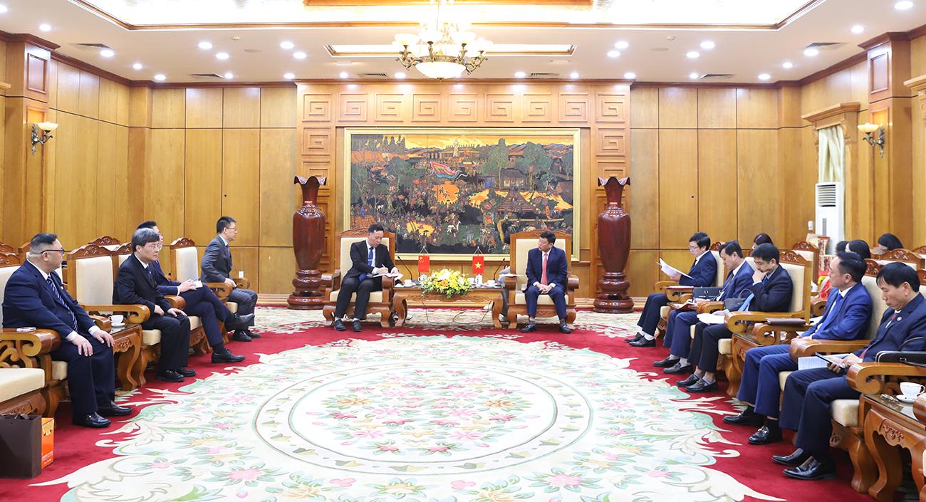 Phó Chủ tịch UBND tỉnh Ngô Tân Phượng (ảnh phải) tiếp ngài Ô Quốc Quyền, Tham tán Công sứ Đại sứ quán Trung Quốc tại Việt Nam.