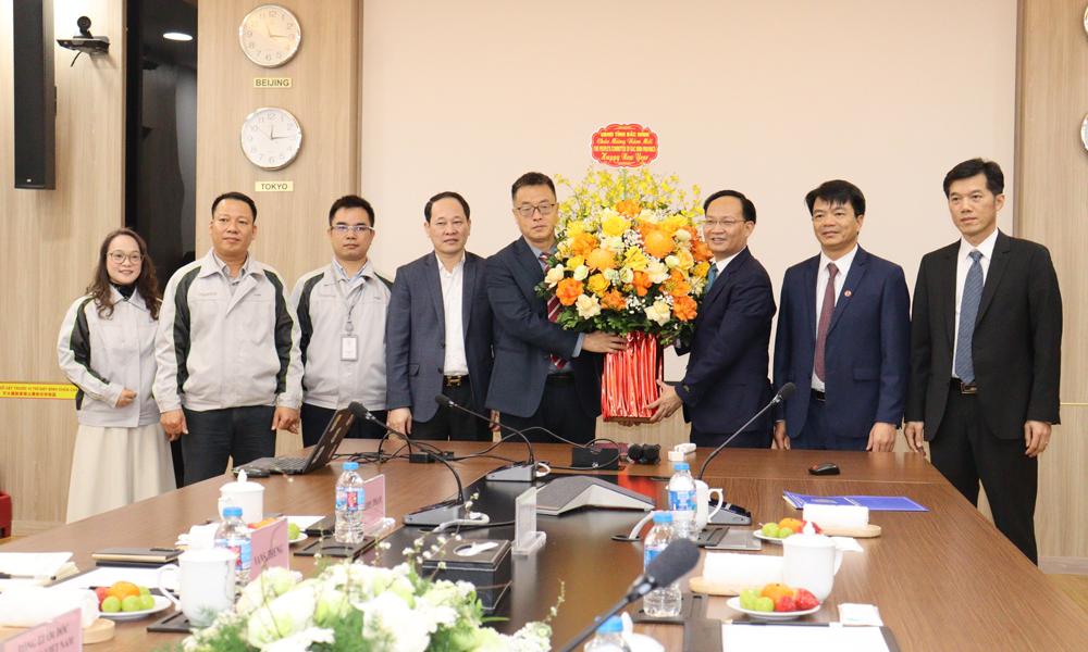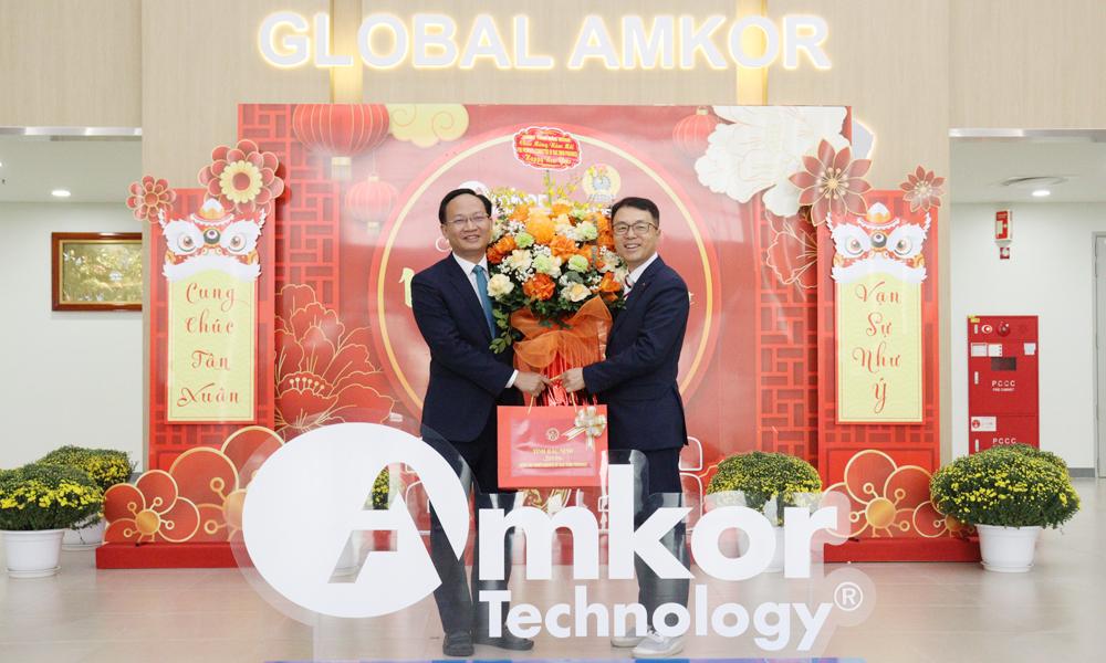 | Phó Chủ tịch UBND tỉnh Phạm Văn Thịnh tặng hoa, quà và chúc Tết lãnh đạo Công ty trách nhiệm hữu hạn Amkor Technology Việt Nam |