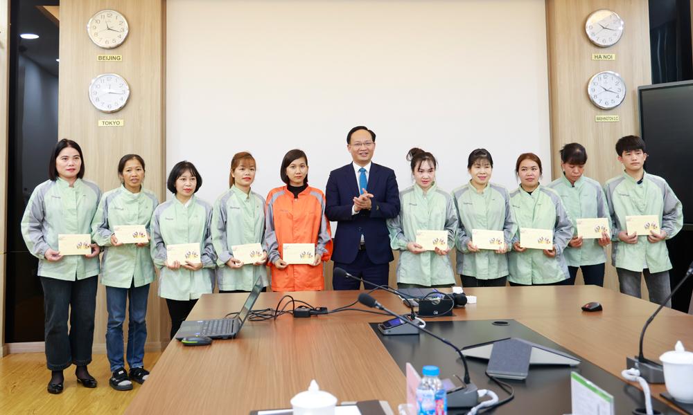 Nhân dịp này, Phó Chủ tịch UBND tỉnh Phạm Văn Thịnh gửi lời chúc mừng năm mới, tặng hoa, quà Tết cho 2 công ty và trao tặng tổng số 20 suất quà, mỗi suất trị giá 1 triệu đồng cho người lao động có hoàn cảnh khó khăn đang làm việc tại 2 doanh nghiệp.